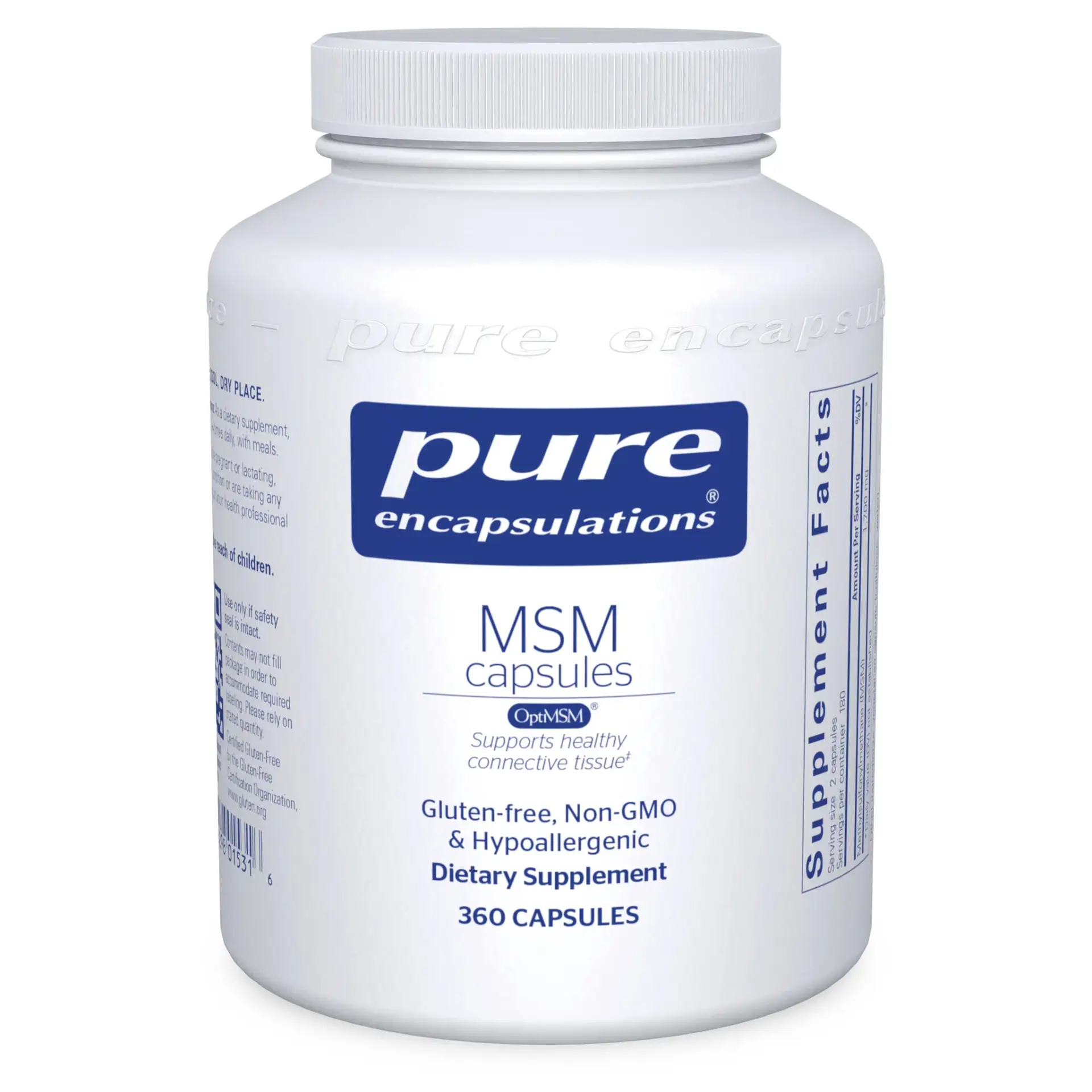 MSM is a source of organic sulfur found naturally in the human body. MSM is 34% elemental sulfur—sulfur is crucial in maintaining healthy tissues. This naturally derived sulfur formula may support immune and respiratory health, supports joint function and comfort, specifically connective tissue health.‡